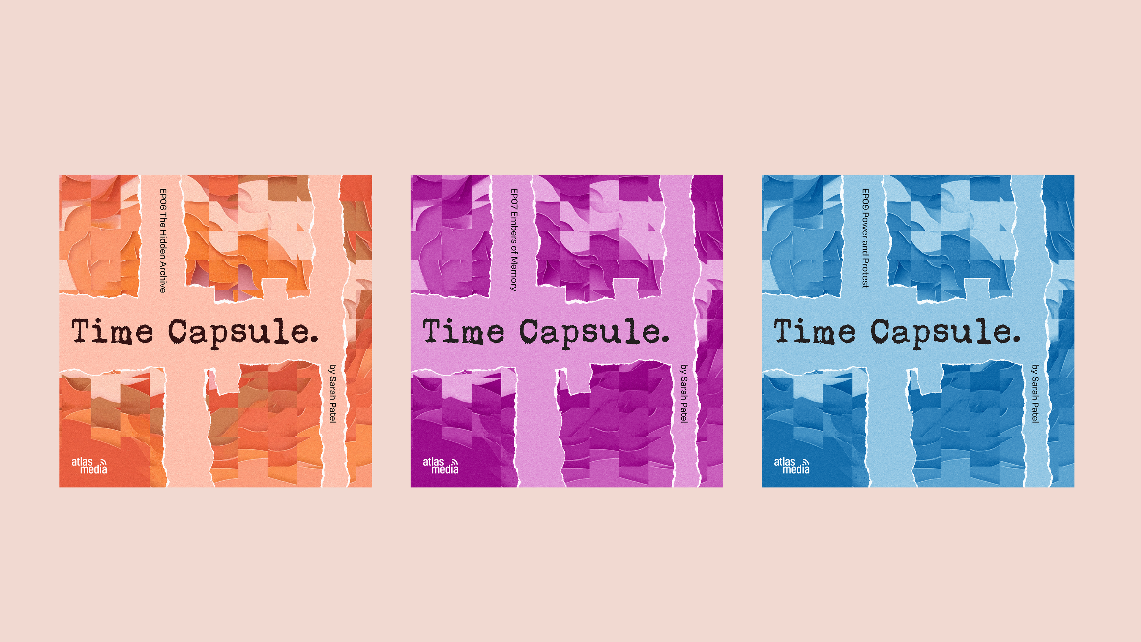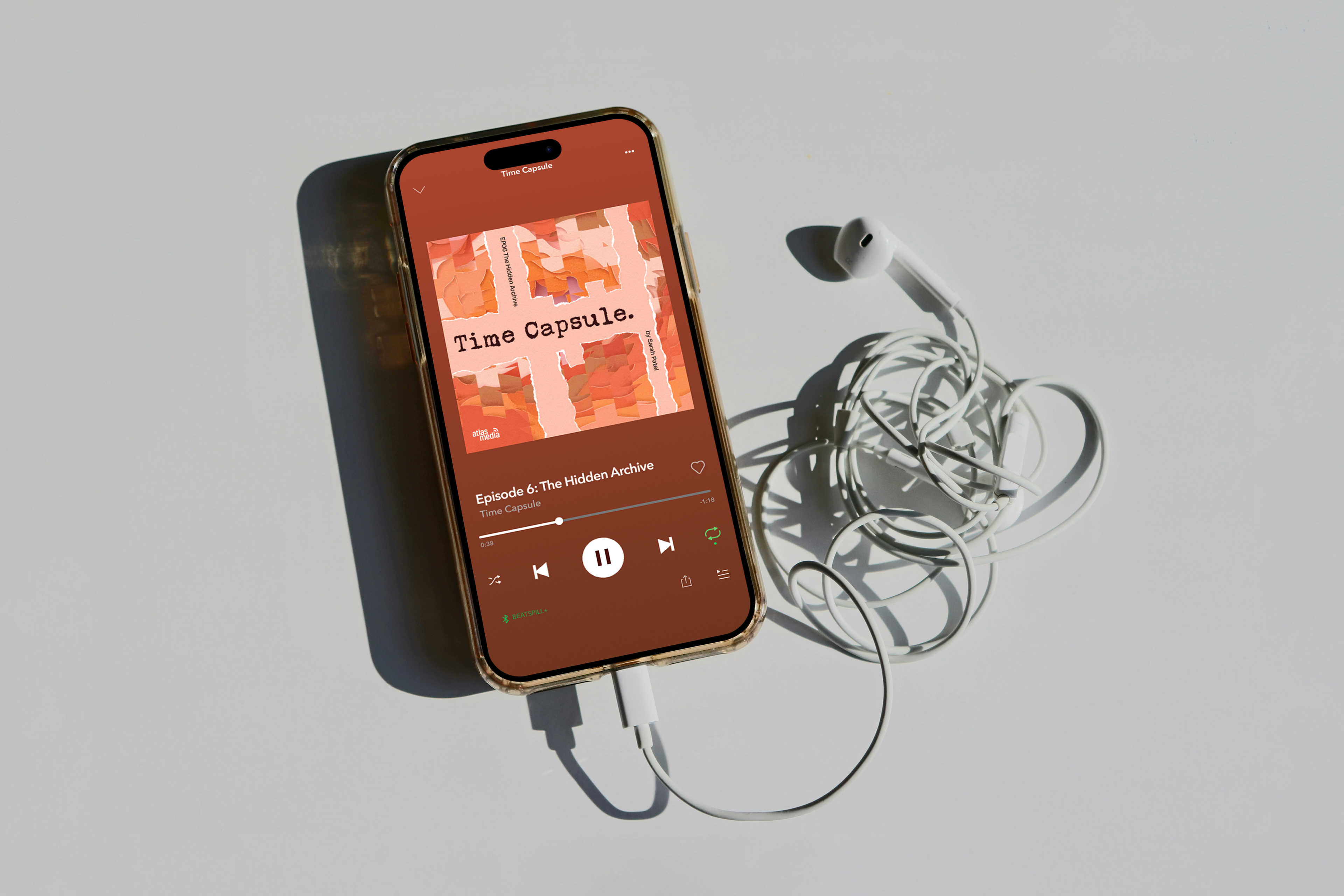 Time Capsule is a podcast that explores stories from the past. The cover design blends texture, image treatments, and a custom title lockup to visually evoke the show’s nostalgic theme.