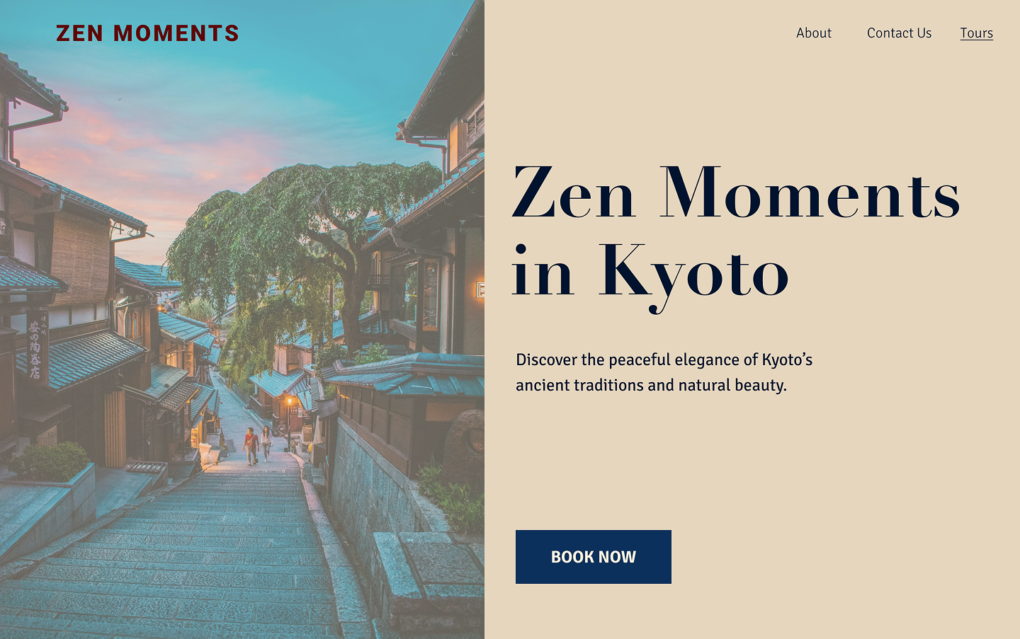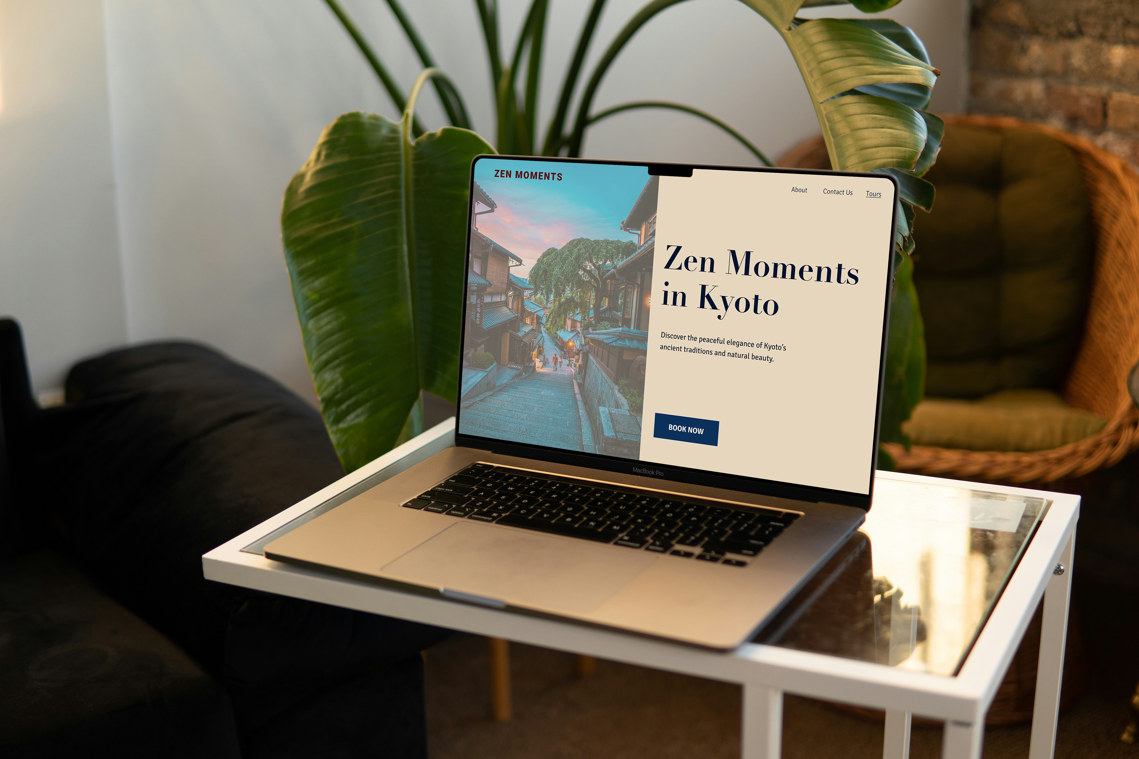 Zen Moments is a travel company offering curated tours in Kyoto, Japan. A responsive website, designed for both desktop and mobile, has been created to promote their experiences and attract potential customers.
